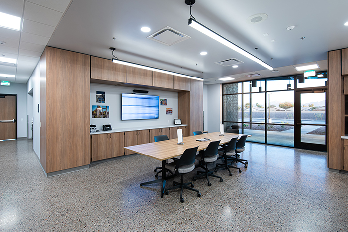 Located in the middle of the city, this new fire station fills a response gap and provides call relief to Avondale’s four other stations. This neighborhood fire station, nicknamed the “The Oasis,” is a modern and durable facility. The project sits on 2.98-acres at West Van Buren Street and 127th Avenue. The site also housed temporary quarters for the crew while the team designed and constructed the station. This station was designed and built during the COVID pandemic in less than a year.