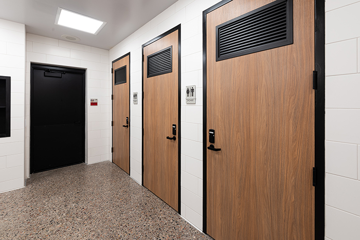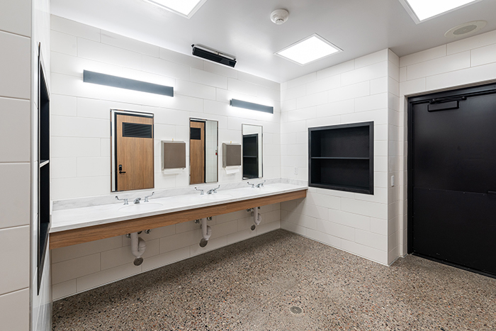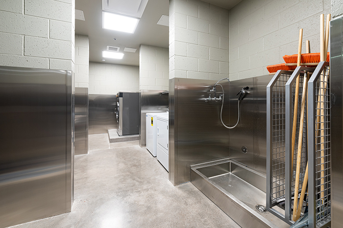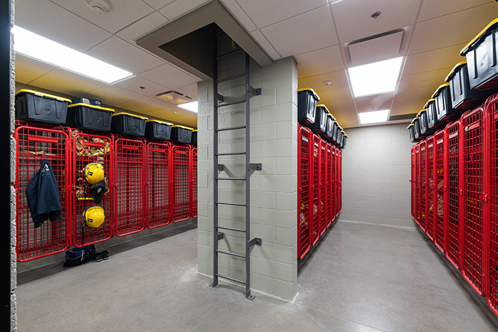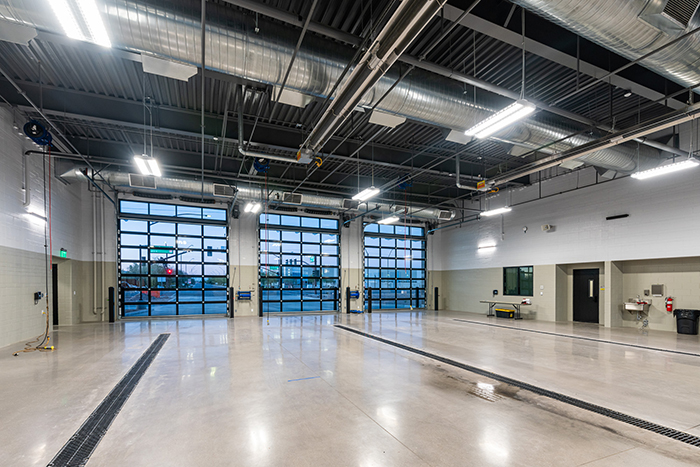 This 17,010 square-foot single-story station consists of 3 bays, 10 gender-neutral dormitories, BC and BSO quarters, offices, a fitness room, a training room, an exam room, logistics, interior decontamination showers, work/living areas, and support spaces. On-site improvements include: an above-ground generator, a public art, a secure patio, a fitness patio with synthetic lawn, and secure parking.