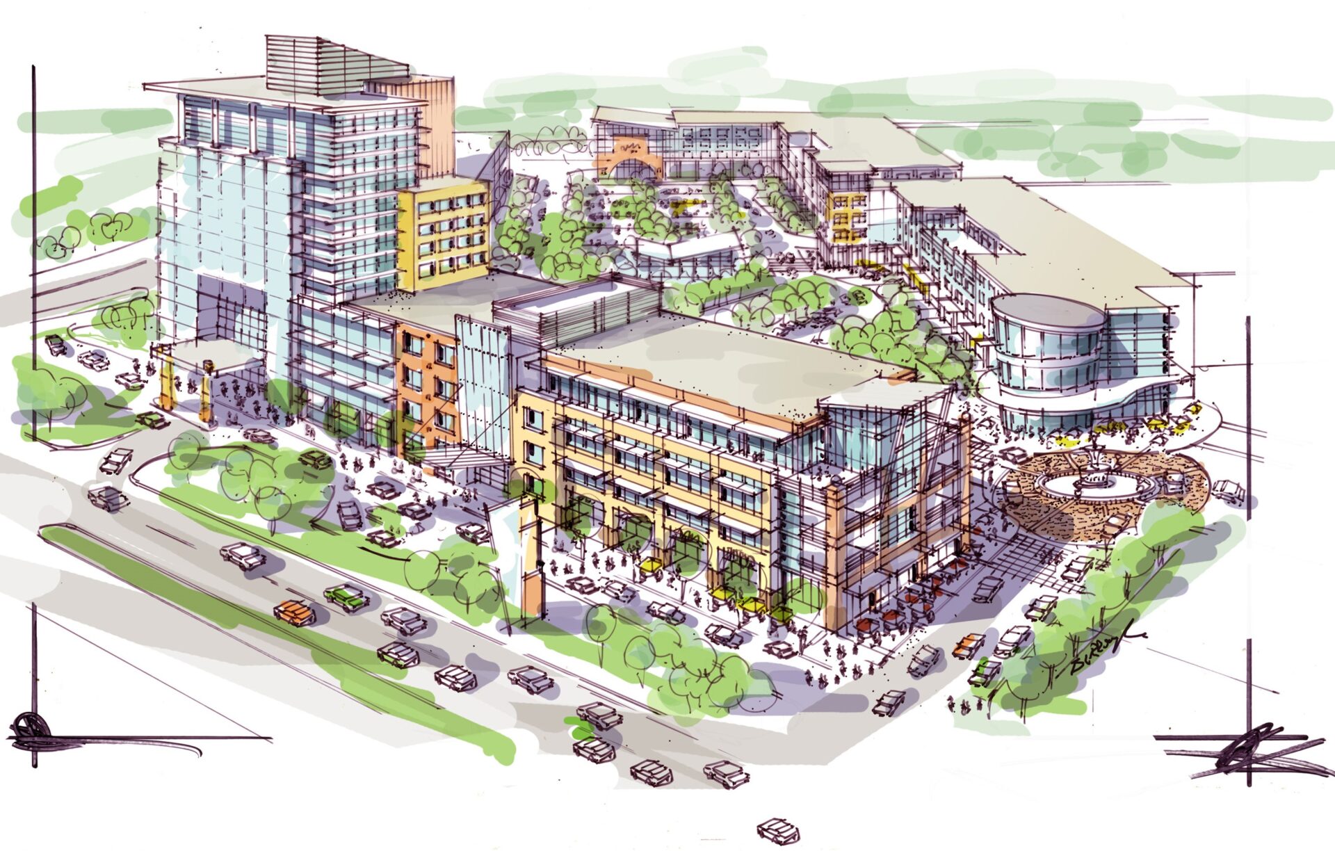 In 2004 the Triple Five Corporation proposed a Mixed-Use Development for the last phase of their massive 80-acre retail development, Boca Park, in the prestigious Peccole Ranch neighborhood. Various schemes were purposed with high-density Residential, Office, Retail, and Dining venues on a pedestrian-oriented plan. The great recession put the project on hold and in 2009 the land was sold.