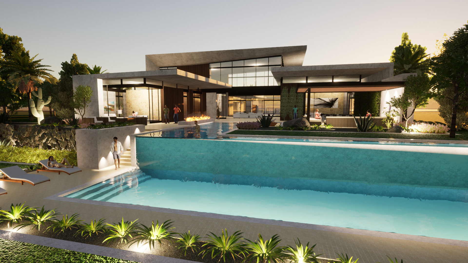 This two-story custom home offers 4 Bedrooms, a Loft, an Office, 4 1/2 Baths, and a 4 car Garage. It has a 5,495 SF first floor and 1,135 SF second floor for a total of 6,630 SF livable. The home was designed for modern living and to capture spectacular city views.