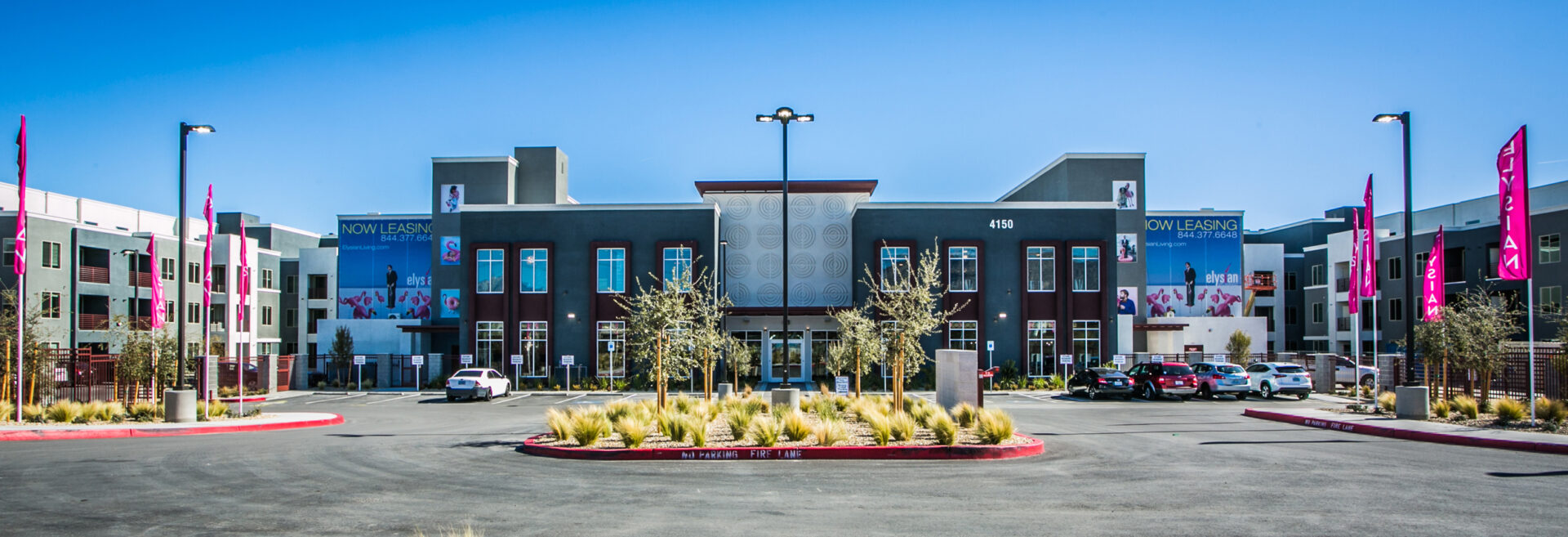 Elysian at Flamingo is a gated, 360 unit, four-story, type V-A wood frame building with tuck-under parking, 4 elevators, and a two-story Clubhouse on 11.7 acres. The density is 25 u/gross acre, 31 u/net acres. The project, adjacent to Summerlin, was built by Whiting-Turner. It was completed and sold in 2019. Consultants include Wright Engineering (Structural), Comfort Engineering (MP), Helix (Electric), Silverlands (Landscape), and Faulkner (Interiors.)